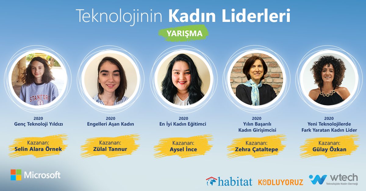 Microsoft Türkiye, Teknolojinin Kadın Liderleri yarışmasının bu yıl dördüncüsünü düzenledi. Başarı hikâyeleriyle diğer kadınlara ilham veren projeleri destekleyen etkinlik Habitat Derneği, Wtech Teknolojide Kadın Derneği ve Kodluyoruz Derneği iş ortaklığıyla hayata geçirildi. Yılın en iyi projeleri arasından yapılan değerlendirmeler sonucunda birinciler seçildi.